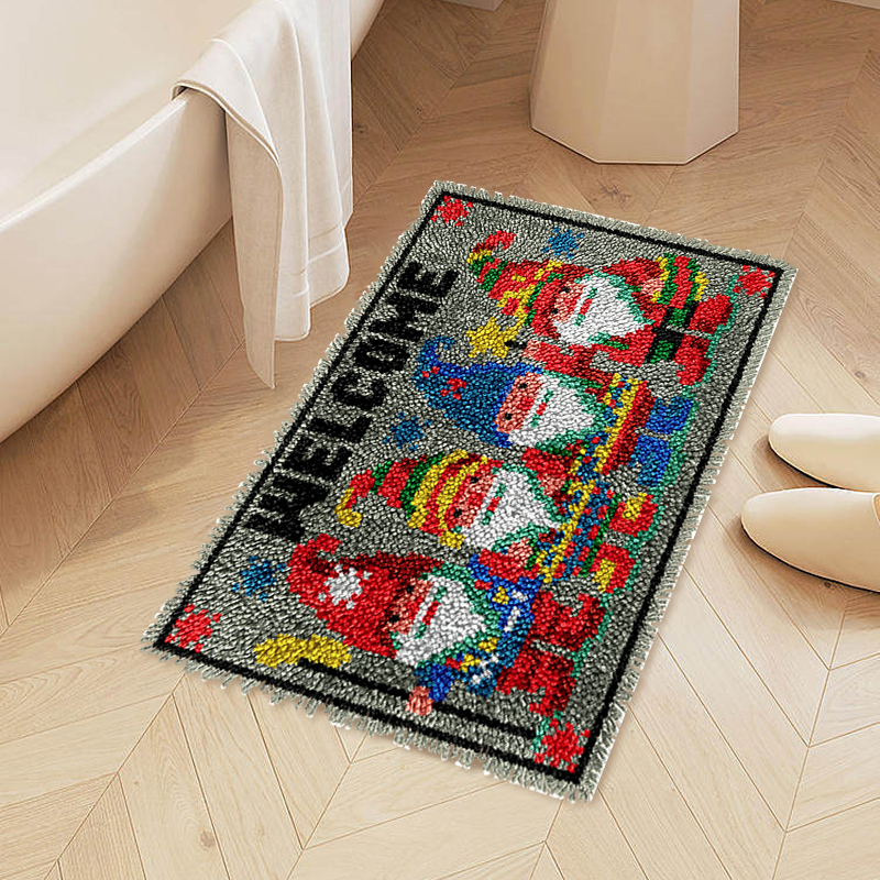 "Welcome" 3 Xmas Gnomes - Latch Hook Rug Kit